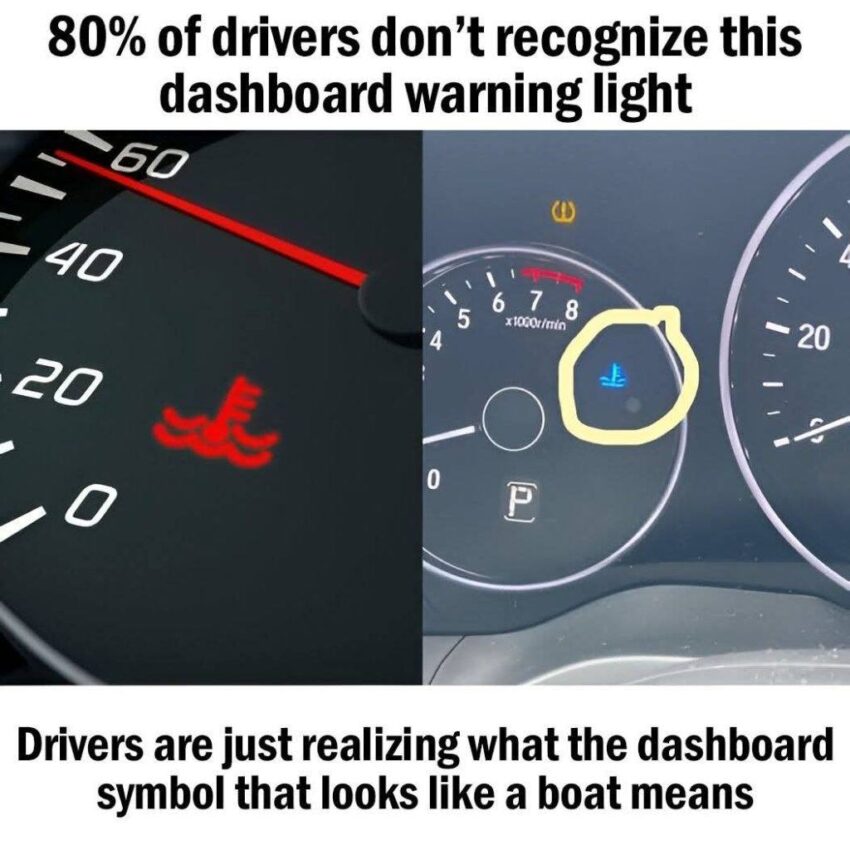That “boat-like” symbol is a cooling system warning. If it turns red, treat it as urgent—it’s there to prevent serious engine damage.