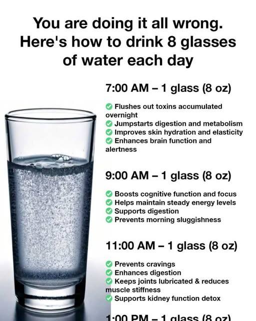 If you want, I can give a practical “hydration schedule” that naturally hits the 8-glass mark without feeling forced.