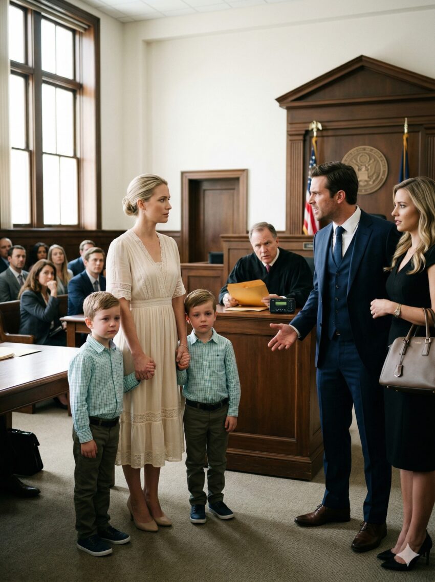 “You’ll Walk Away With Nothing… And I’ll Take The Kids,” My Husband Said While His Mistress Smiled In Court — But When I Entered With Our Twin Boys, The Truth About His Company Left Even The Judge Speechless